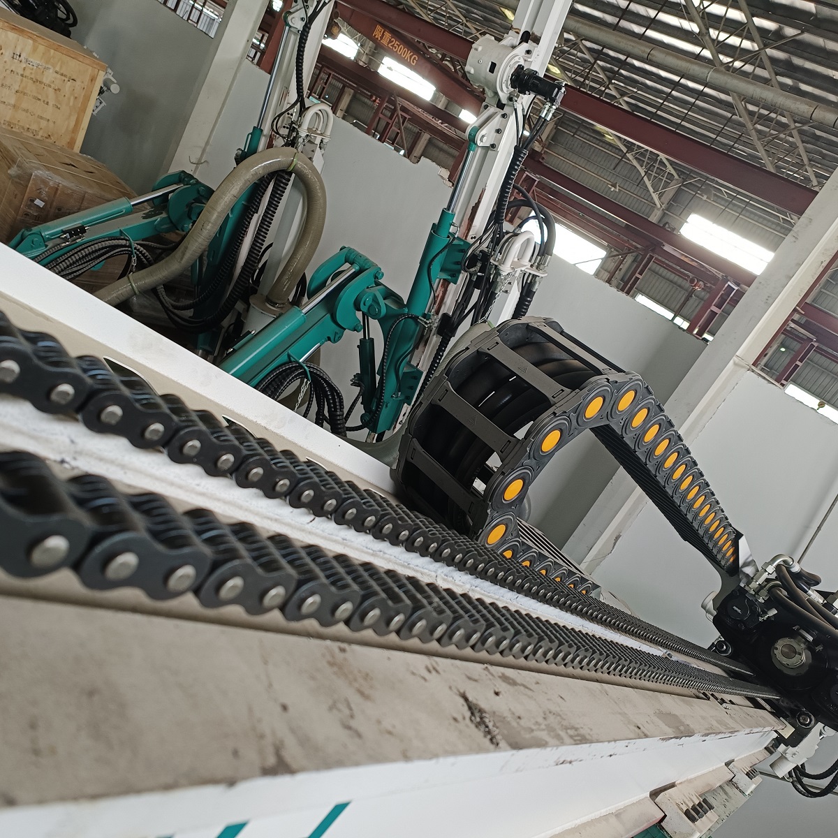 Le cóimheas tarchurtha leanúnach, cuireann tiomáint slabhra ar chumas rialú beacht ar shuíomh borradh druileála, ag cinntiú ingearachacht druileála, rud atá ina riachtanas ríthábhachtach le haghaidh tacaíochta boltaí carraige.