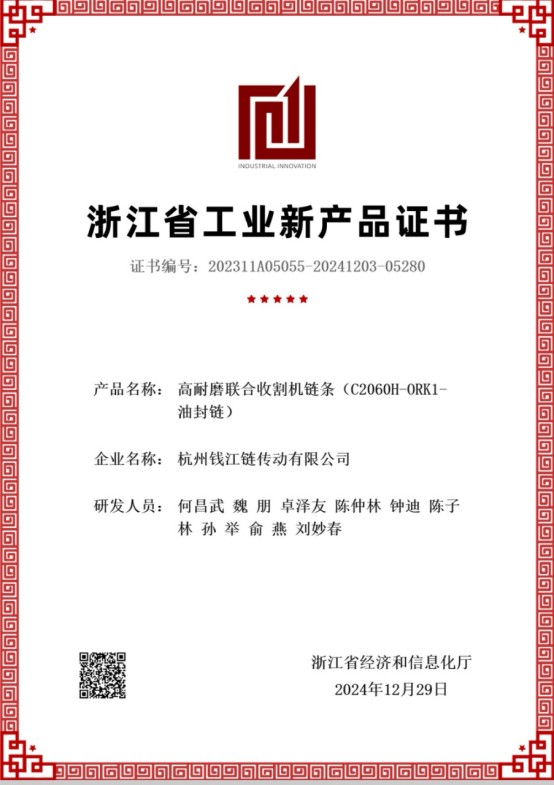 I 1991, chomhoibrigh an chuideachta le hInstitiúid Taighde Chain Drive Ollscoil Jilin chun slabhraí a fhorbairt agus a tháirgeadh le O-rings agus X-rings, ar bronnadh an "Gradam Speisialta do Tháirgí Nua den Scoth i dTionscal Slabhra na Síne" i 2001. Tá carnadh fadtéarmach ag an gcuideachta i réimse teicniúil na slabhraí ola-séalaithe.