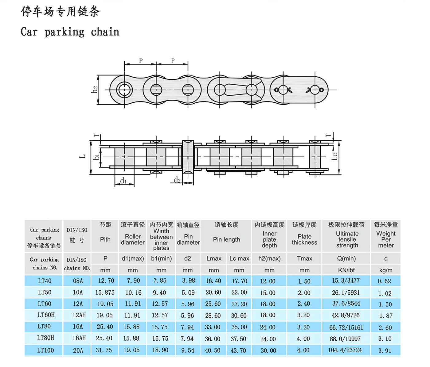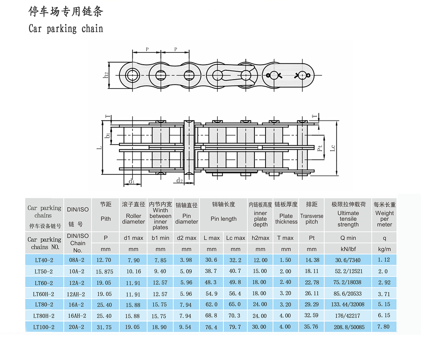 Is é slabhra an trealaimh pháirceála tríthoiseach Chliste ná tarchur dara céim phríomhchorp an trealaimh pháirceála. Is é JB/T11079-2011 an caighdeán cur chun feidhme. Saintréithe úsáide an tslabhra: cumas iompair mór, neart teanntachta ard (neart statach), tá an neart teanntachta íosta 10% -30% níos airde ná gnáthshlabhraí sorcóir cruinneas’, tá an t-innéacs saobhadh, cruinneas fad slabhra, friotaíocht tuirse srl níos airde freisin ná na slabhraí sorcóir gnáthchruinneas’.