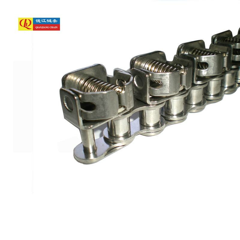 Is cineál speisialta slabhra iompair leaisteacha iad slabhraí clampála cruach dhosmálta mar 08B agus 10B a mhonaraigh Hangzhou Qianjiang Chain Industries. Téann a bhfeidhm níos faide ná iompar simplí; is í an phríomhghné ná an saotharphíosa a choinneáil go daingean agus go seasta le linn gluaiseachta. Tá difríocht mhór idir an dearadh seo agus na slabhraí iompair caighdeánacha i struchtúr agus i bhfeidhm.