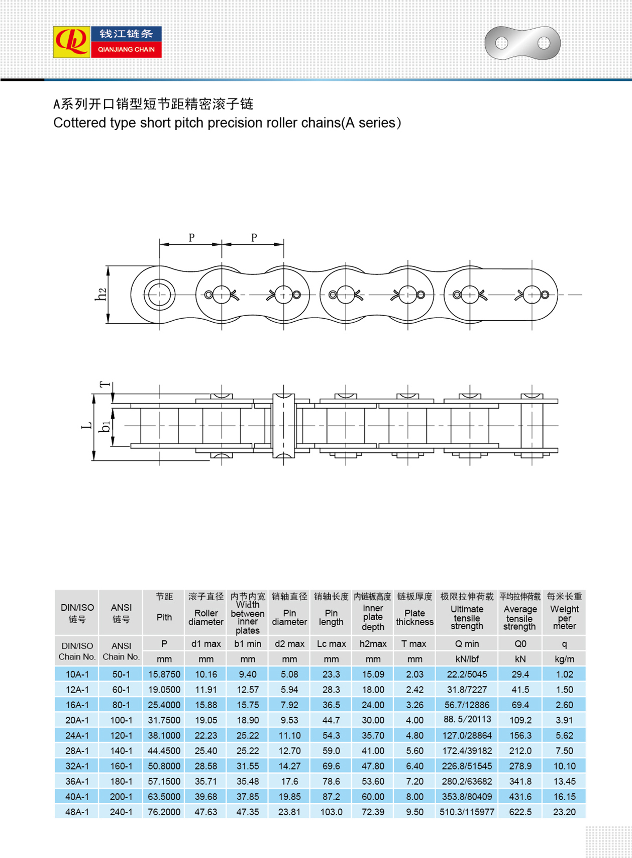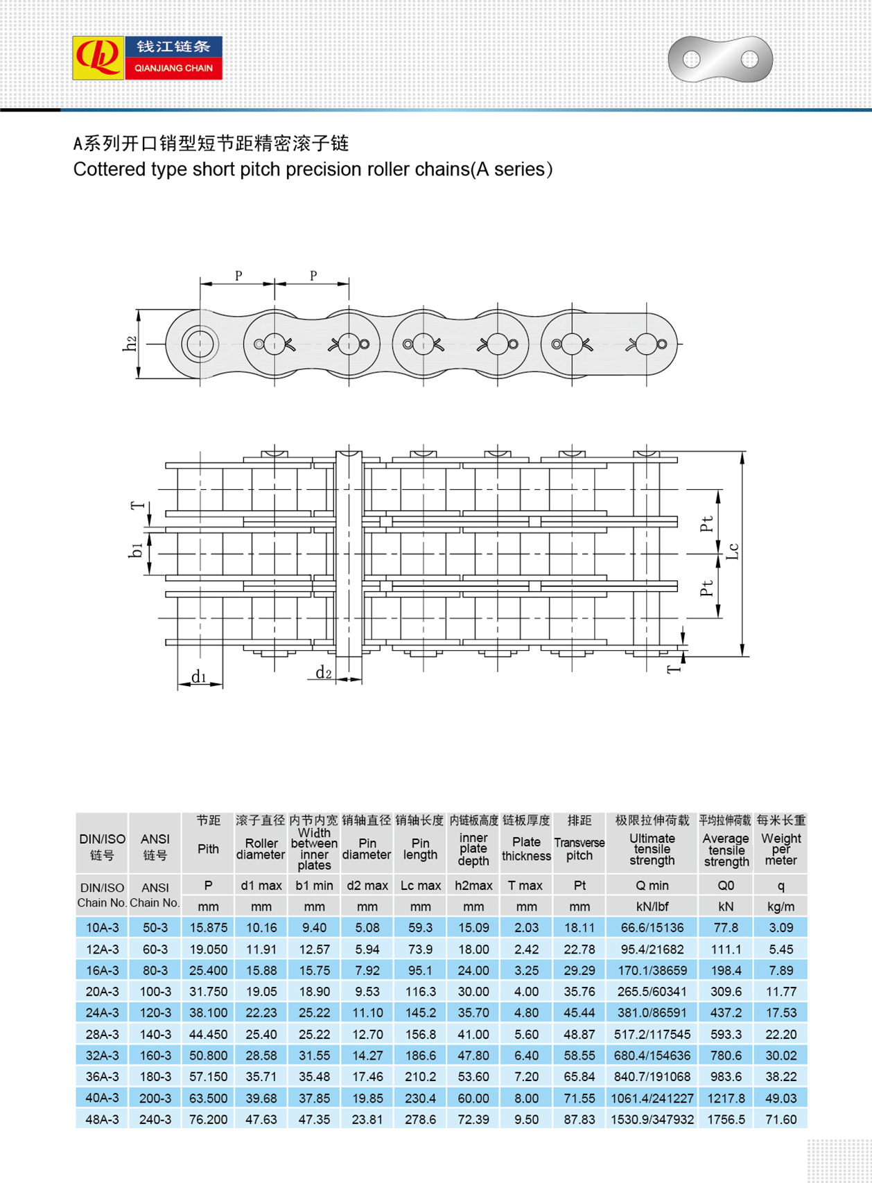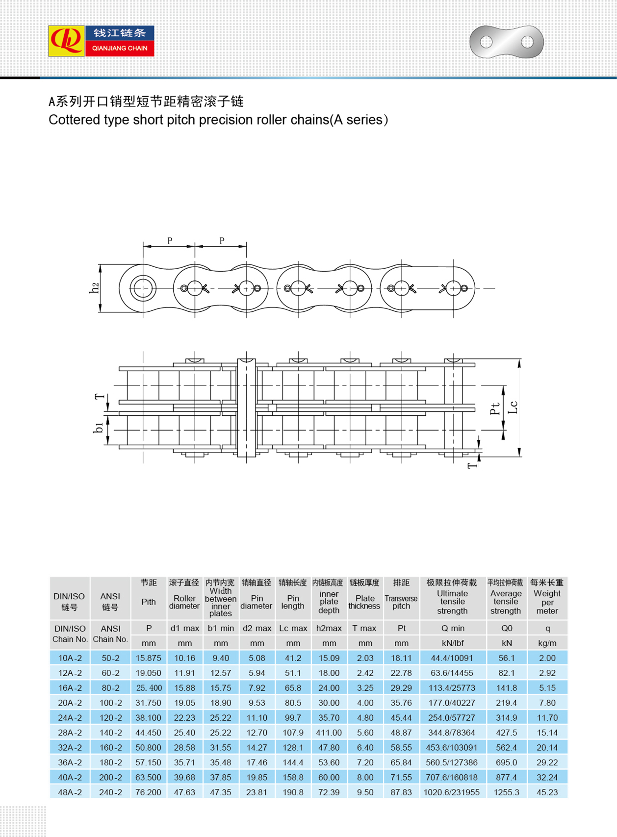 Is iad Slabhraí Rollóra Beachtais Gearr-Pháirc Cottered (Sraith A) an réiteach deiridh le haghaidh feidhmeanna tionsclaíocha éilitheacha, ag tairiscint feidhmíocht agus iontaofacht gan mheaitseáil. Deartha le cruinneas-innealtóireacht, tá cumas ualachiompartha eisceachtúil ag na slabhraí seo, rud a fhágann go bhfuil siad oiriúnach d'oibríochtaí tromshaothair. Cinntíonn a dtógáil láidir marthanacht fiú faoi choinníollacha, agus seachadann an dearadh páirce gearr tarchur cumhachta réidh agus éifeachtach. Cibé an bhfuil feidhmíocht chomhsheasmhach ag teastáil uait in iarratais ardluais nó neart iontaofa le haghaidh ualaí troma, ardaíonn na slabhraí sorcóir seo an dúshlán gach uair.