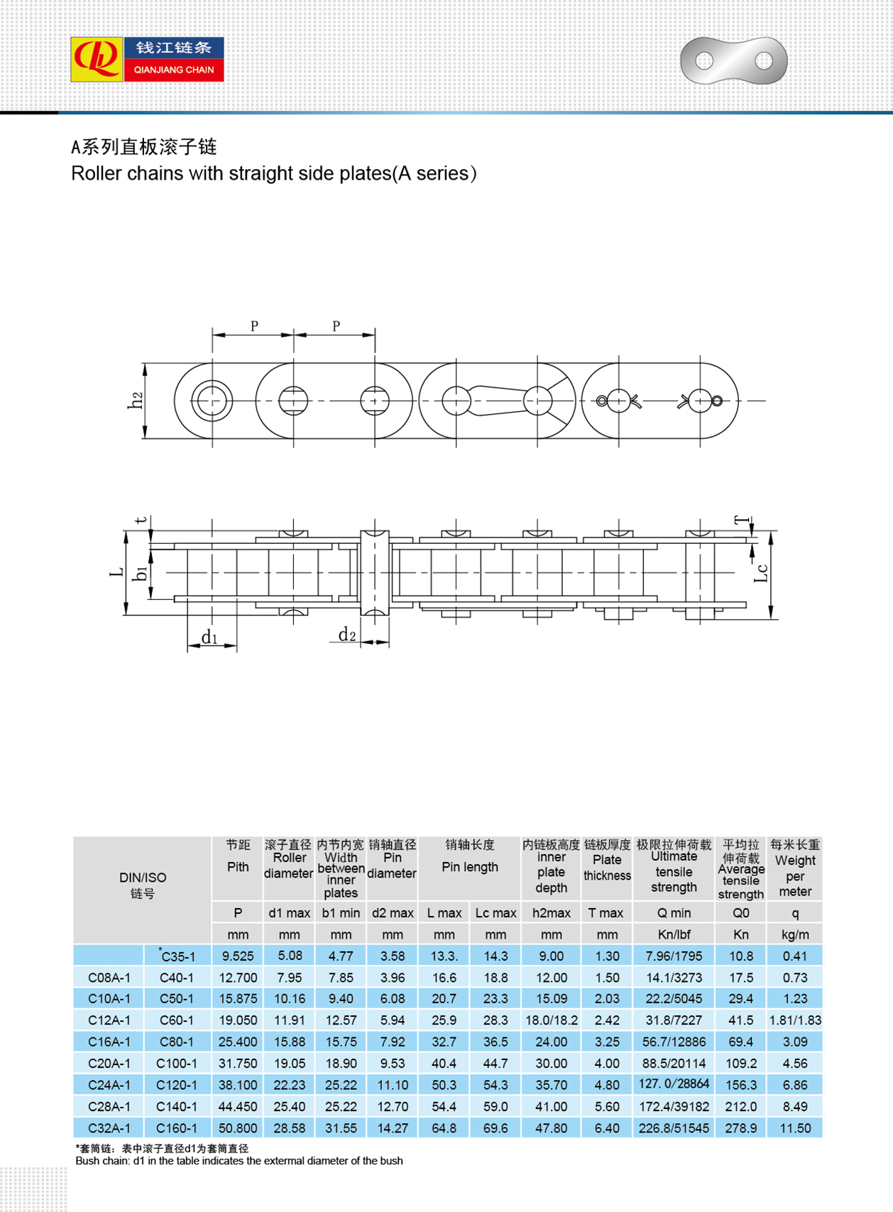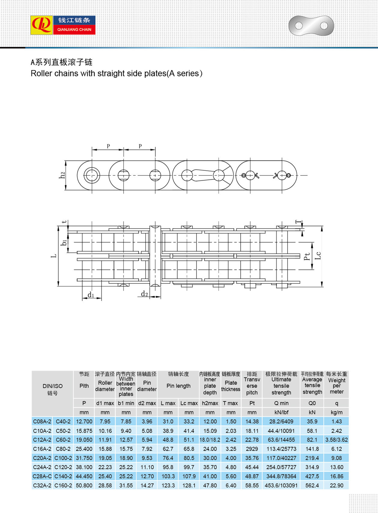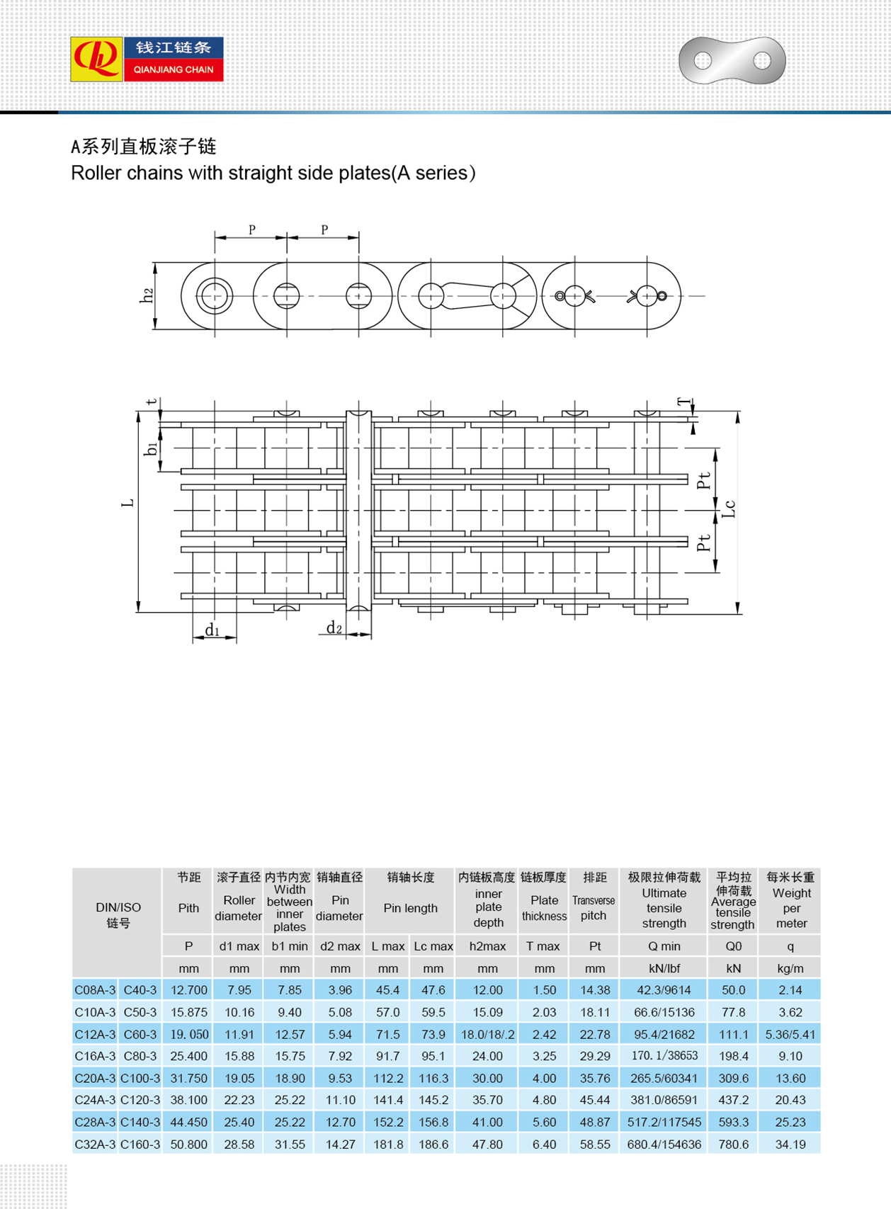 Slabhraí sorcóir le pláta taobh díreach ( sraith A )