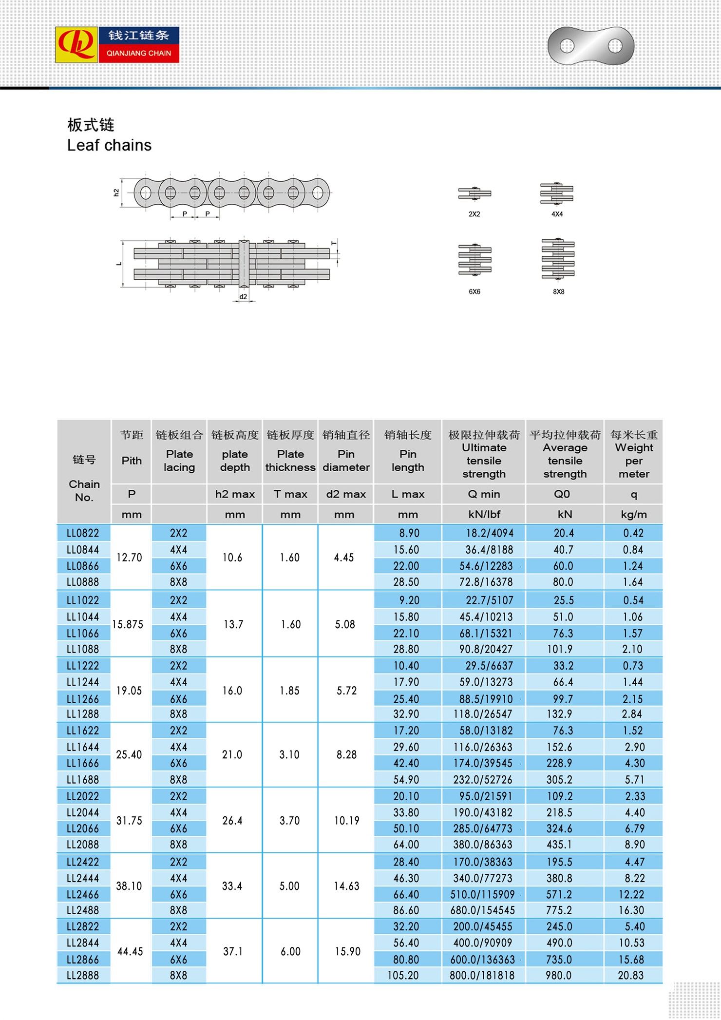 (Sraith LL) Slabhraí Duille Íseal Cothabhála Ard-Chobhsaíochta – innealtóireacht chun feidhmíocht eisceachtúil a sheachadadh le cothabháil íosta. Deartha le haghaidh marthanacht agus iontaofacht, tá na slabhraí duille seo crafted ó ábhair phréimhe a chuireann in aghaidh caitheamh agus tuirse, rud a chinntíonn saol seirbhíse fada fiú i dtimpeallachtaí éilitheacha. Soláthraíonn a dtógáil láidir neart teanntachta ard agus cobhsaíocht, rud a fhágann go bhfuil siad an-oiriúnach le haghaidh feidhmeanna tromshaothair cosúil le forklifts, trealamh ardaithe, agus innealra tionsclaíoch.